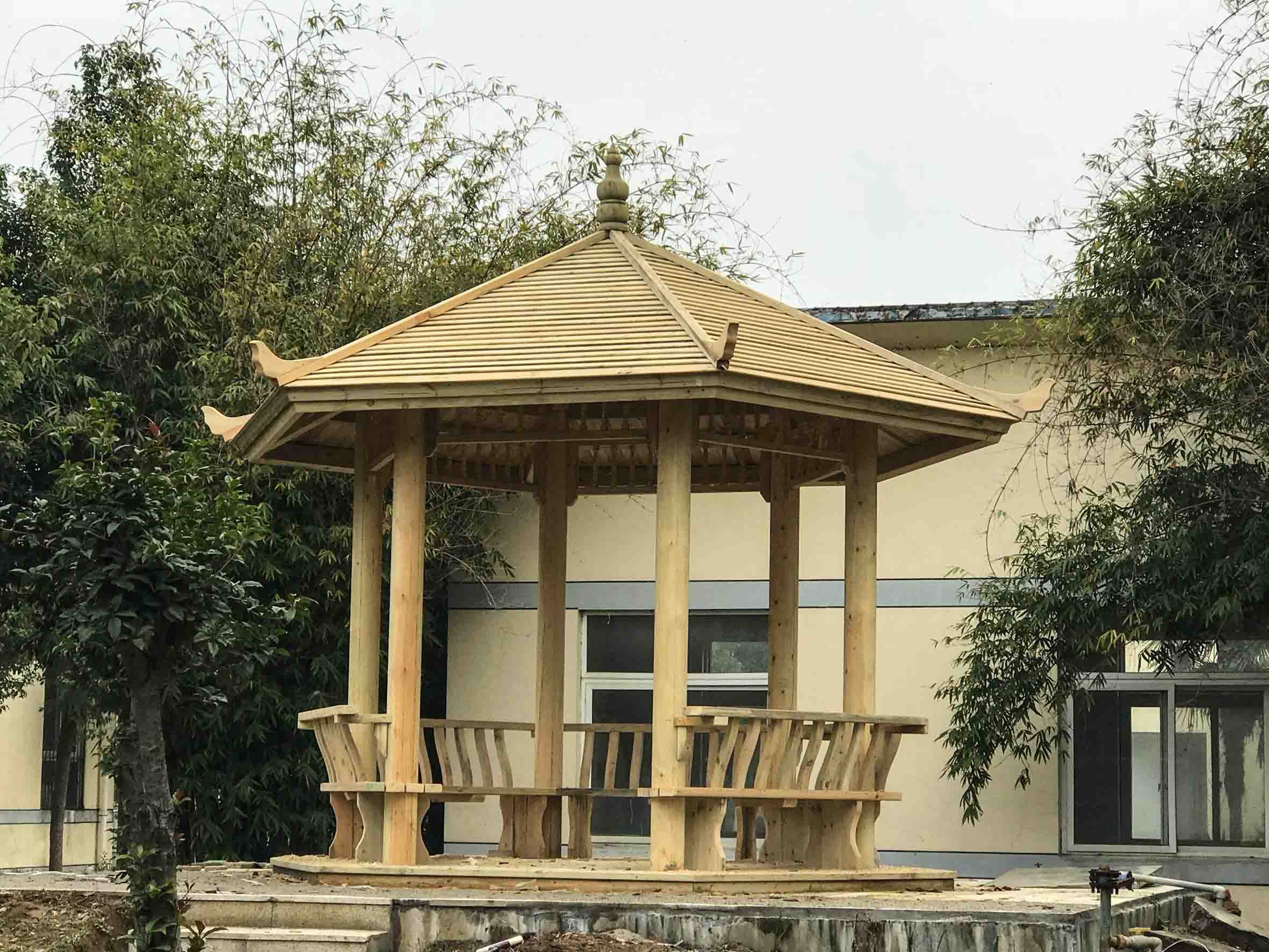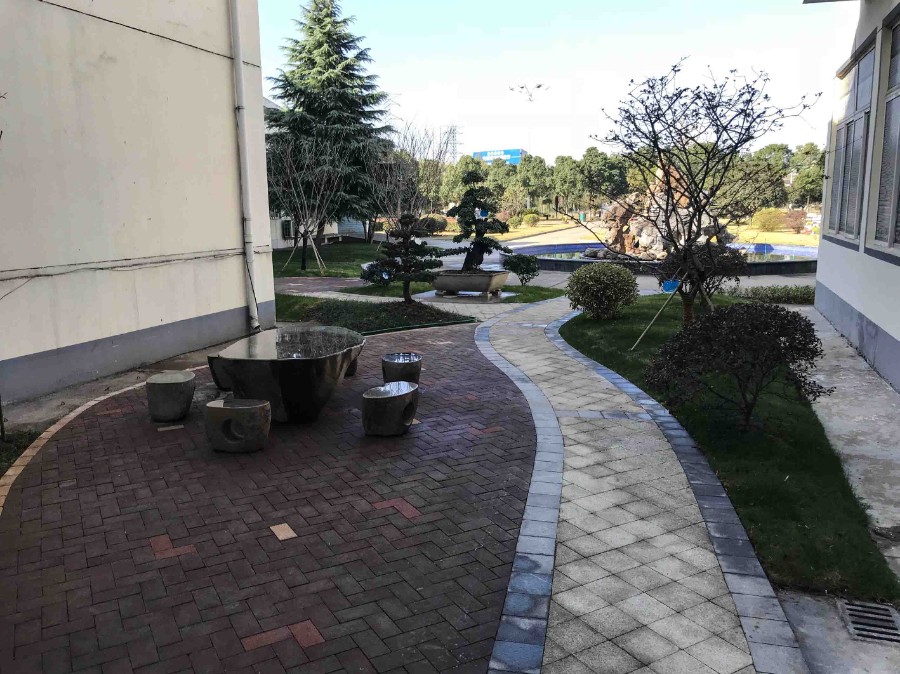 在保持原有景觀基礎上,增加了古色古香的木亭,富有野趣的石桌石凳,原有的噴泉假山也煥然一新。在綠化方面,增加了造型優(yōu)美的樹樁,蒼翠欲滴的竹子等。改造后,整個景觀大幅度提升。